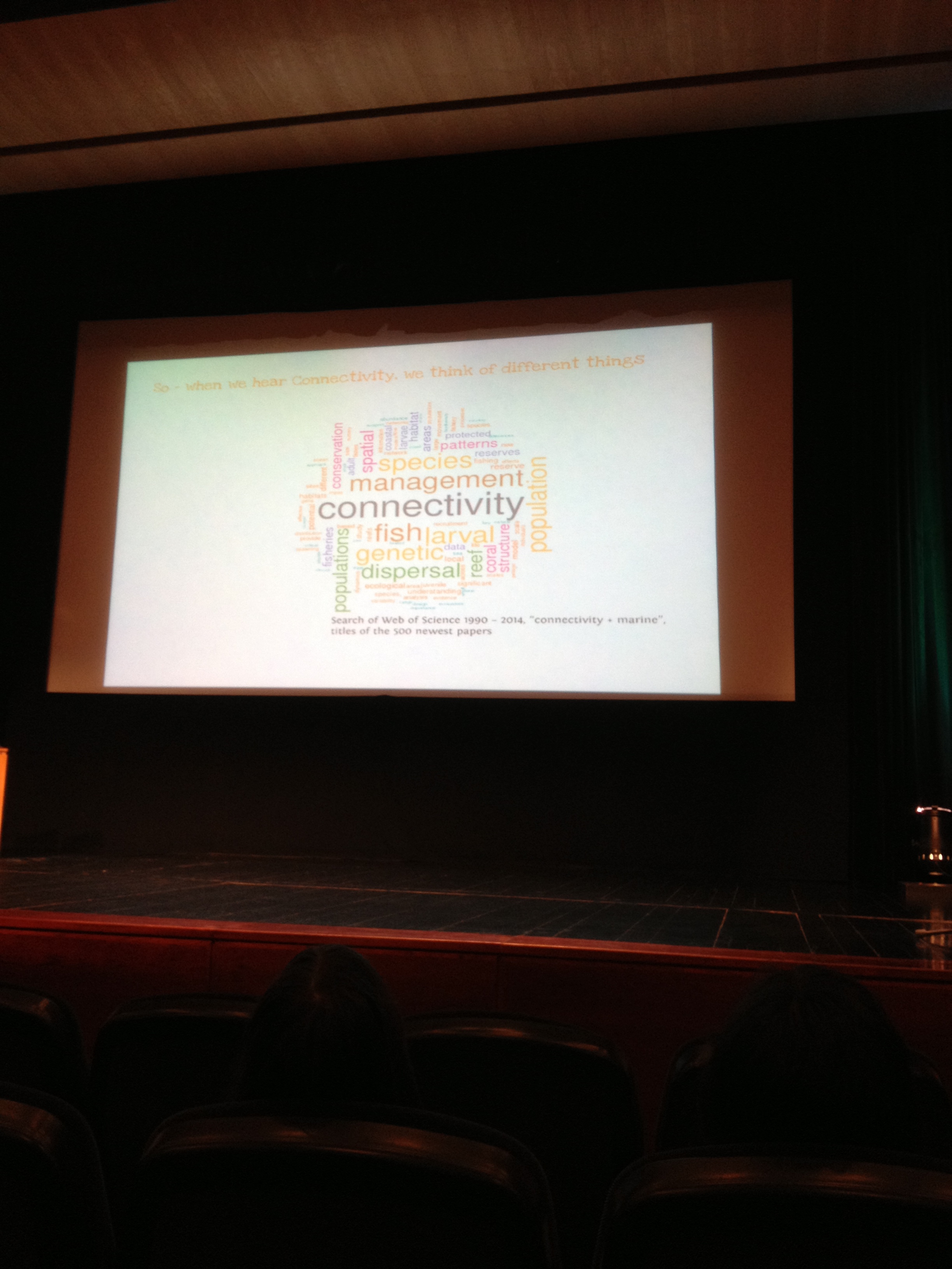 Ordet connectivity är ett sådant ord som används både i vardagen och vetenskapligt, som diversitet och evolution. Men som många andra ord har det en lite annan betydelse i det vetenskapliga sammanhanget än det vardagliga. Inom management kan det ha en tredje betydelse. Om man inte är medveten om detta och ser till att definiera precis vad man menar med ord när man samarbetar mellan olika grupper, så leder det oftare än inte till missförstånd och kommunikationsproblem. Audrey visar ett ordmoln på de 500 senaste artiklarna publicerade på ämnet connectivity sedan 1990. Många av de mest använda orden har en mening för biologer och en annan för ekonomer och en tredje för jurister. Knepigt, men inte oöverstigligt hinder.