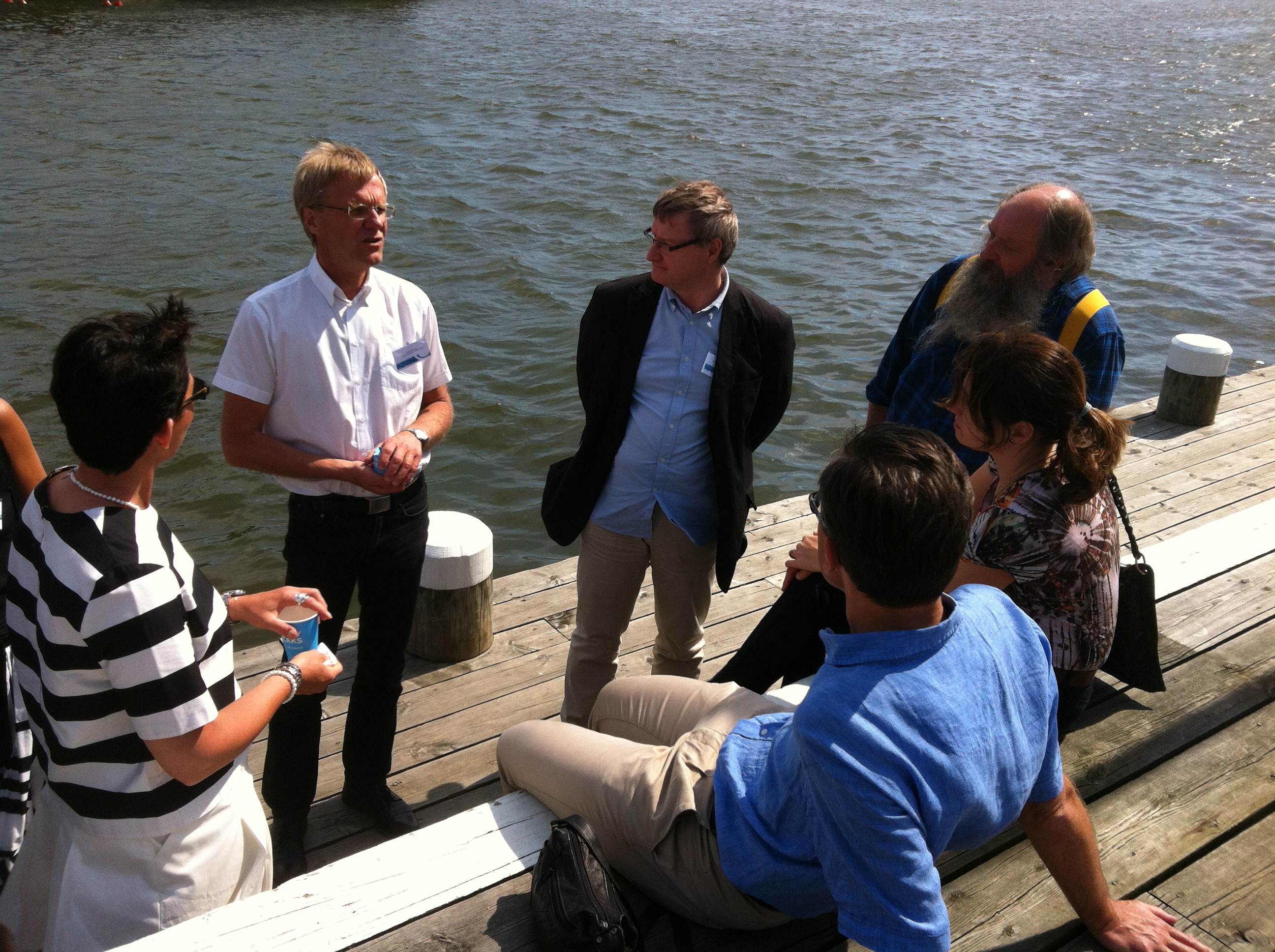 Nu vidtar ett intensivt arbete på Vattenmyndigheterna, remisser skickas ut från HaV under sommaren och i oktober kommer delegationen att ta beslut om förvaltningsplaner och åtgärdsprogram. Dessa skickas sedan ut på sex månaders samråd. Efter en intensiv dag tog Södra Östersjöns Vattendelegation en paus vid kajen i solskenet innan det var dags att gå ombord på färjan till Lilla Bommen och ta tåget hem.