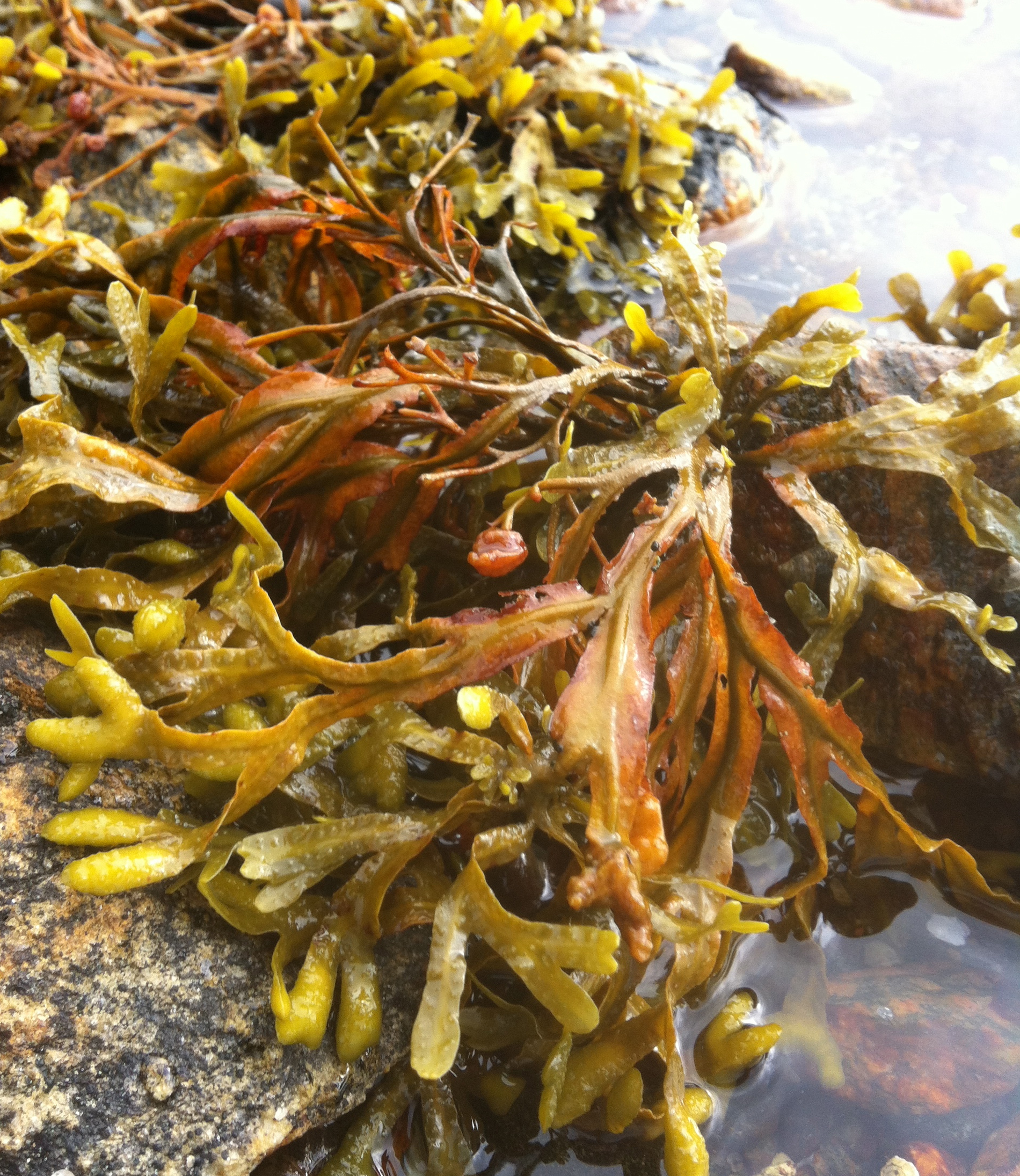 Högtryck har dominerat under en vecka eller mer och vattenståndet var långt under hela helgen. I vattenbrynet låg plantor av spiraltång torrlagda. De flesta var hårt betade av strandsnäckor, så att bara mittnerven var kvar, men har fått nya grenar som sitter som en rosett från fästskivan. I topparna på de längsta grenarna finns välutvecklade förökningstoppar. Detta är tidigt för året och kan vara ett tecken på att även spiraltången har en andra omgång av förökningstoppar vissa år. Normalt brukar de nya förökningstopparna synas sent på året i november – december.