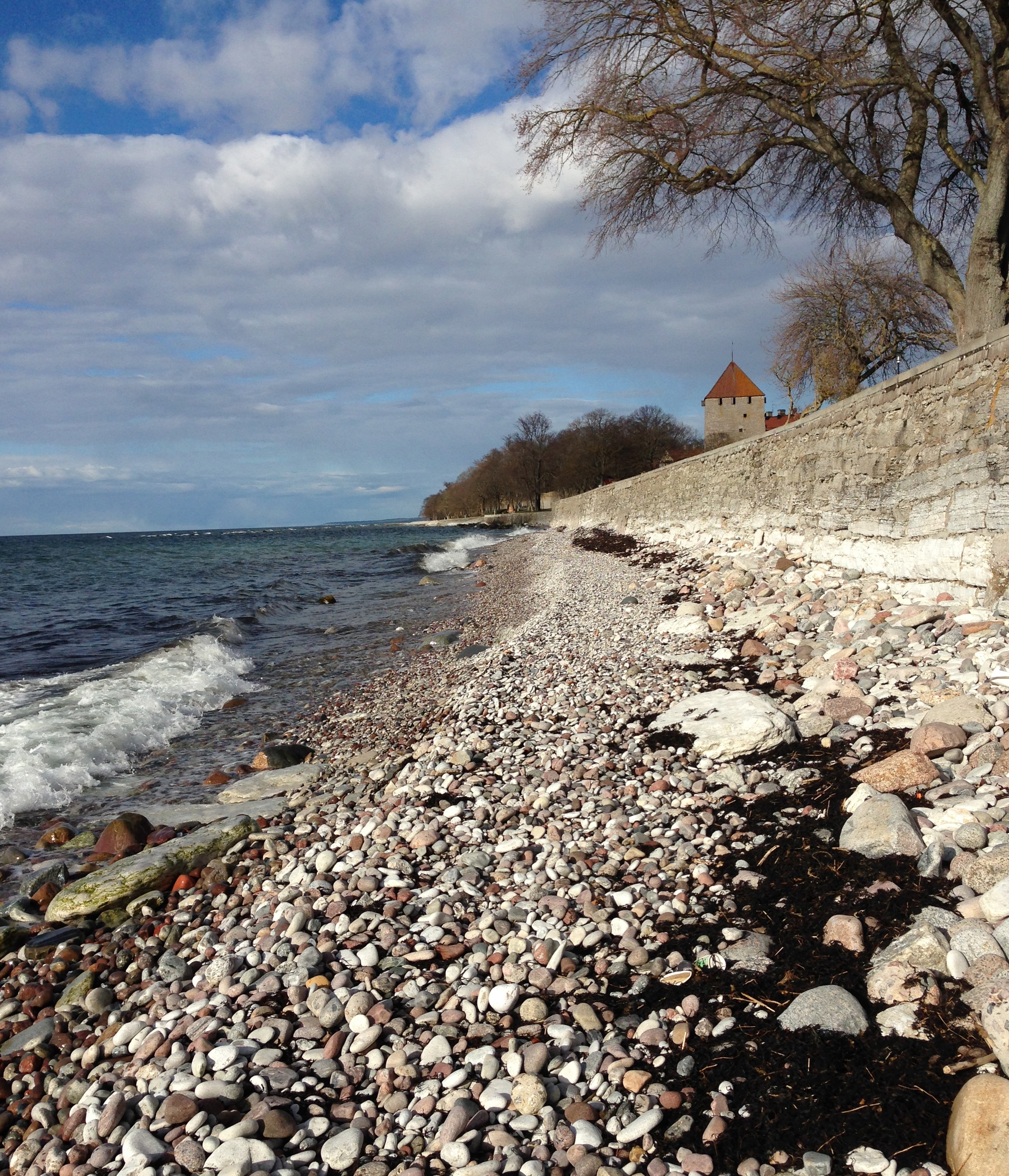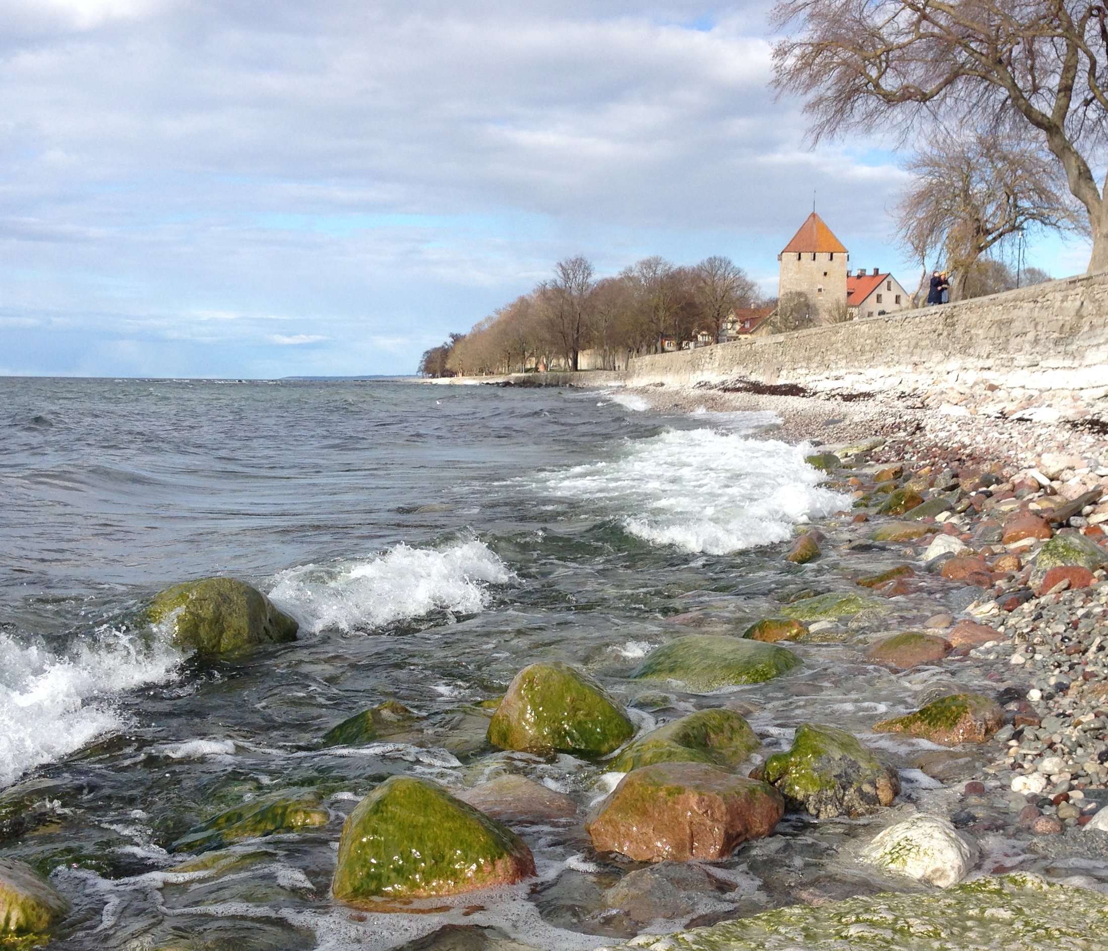 Det går inte riktigt att föreställa sig att Visby kommer att vara fullt med folk om drygt två månader när semestrande människor och den politiska Almedalsveckan drar igång. Nu blommar påskliljor och pestskråp i backarna och vågorna rullar in mot det fina och rundspolade stenarna i strandkanten nedanför Almedalen.