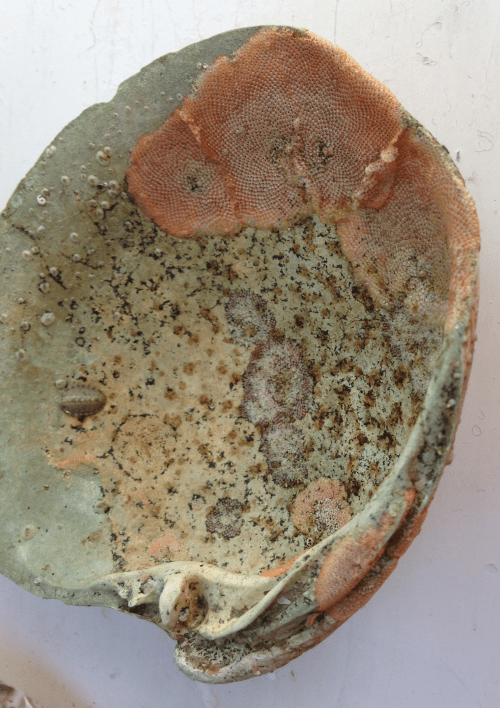 Spår av vad som finns i vattnet utanför. » 3Cryptosula på Bollmusselskal