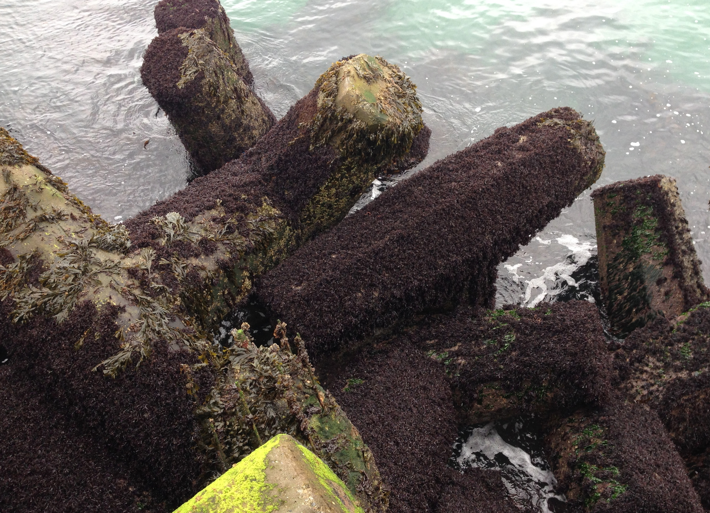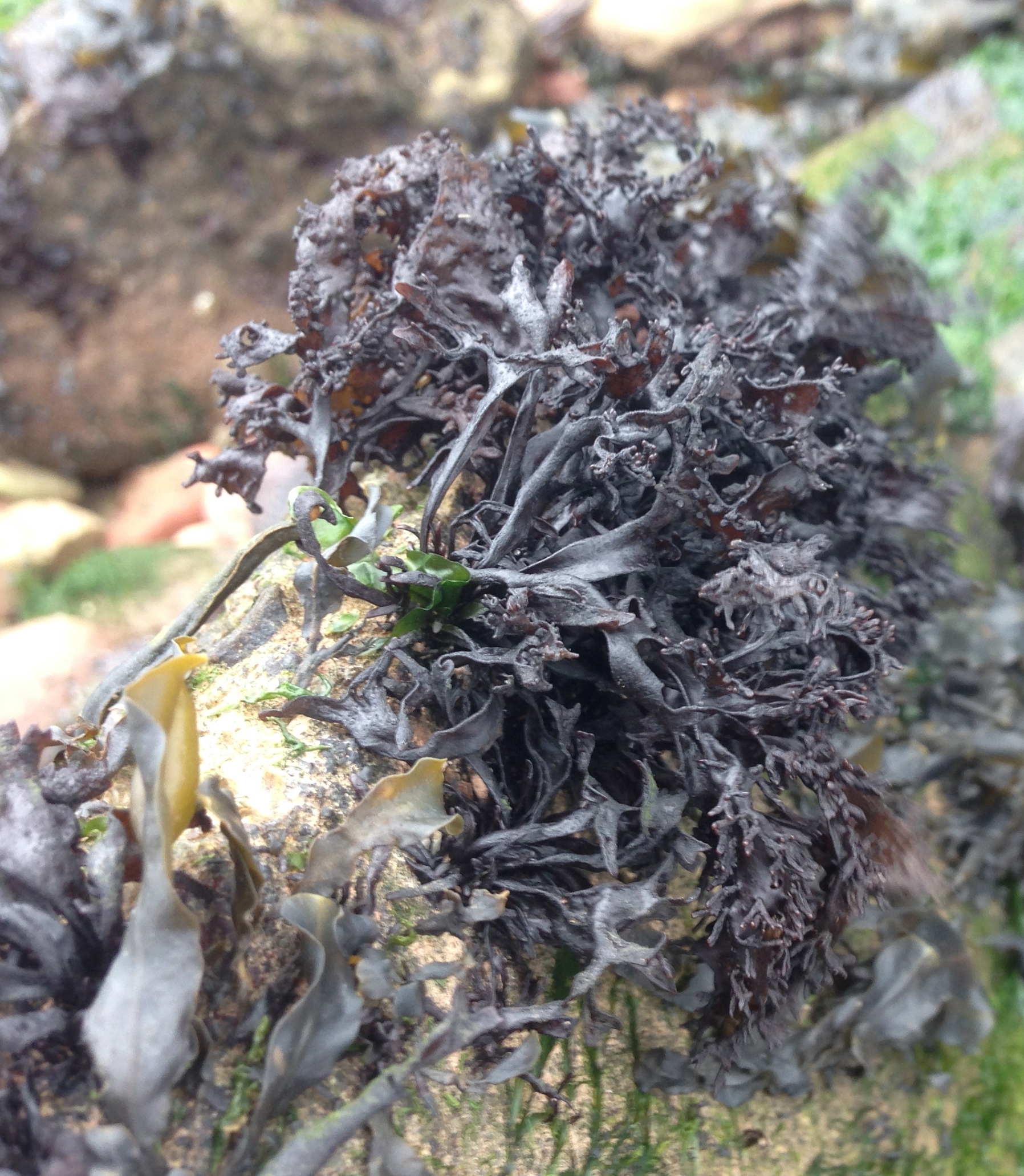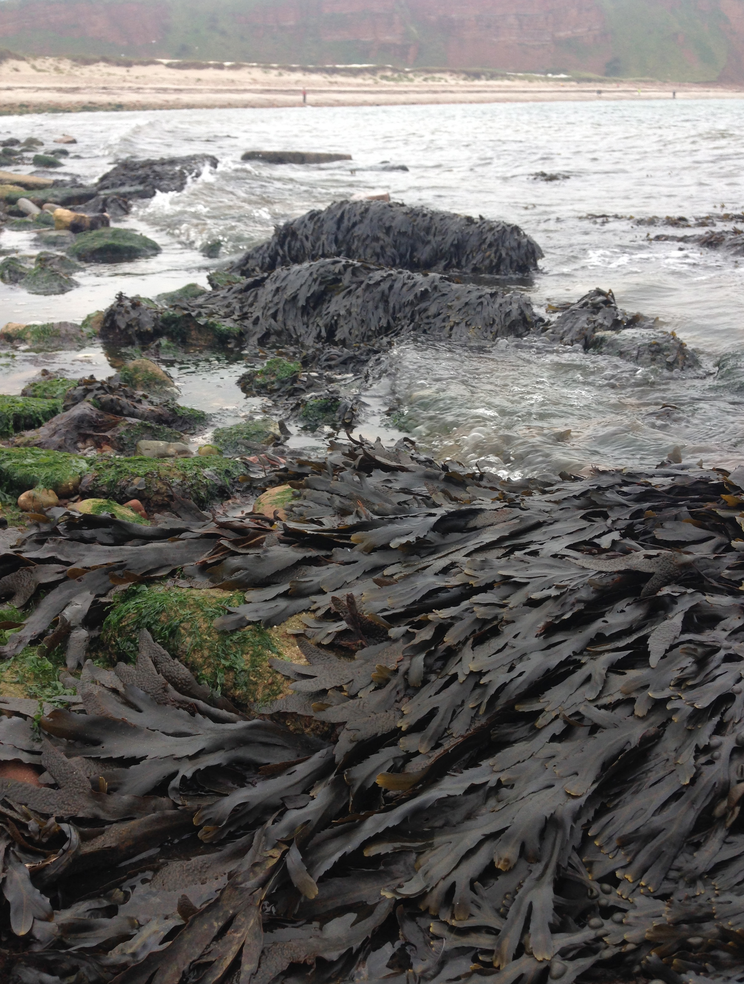 De små blåstångsplantorna som sitter högst upp på stranden visade på skador efter en längre period av uttorkning. Det gör att bålen delas så att det ser ut som om de har långsmala blåsor i gren topparna. Lite längre ner närmare lågvattenlinjen växer sågtången med sina stora platta förökningstoppar. Hösten är tiden för sågtångens förökning.