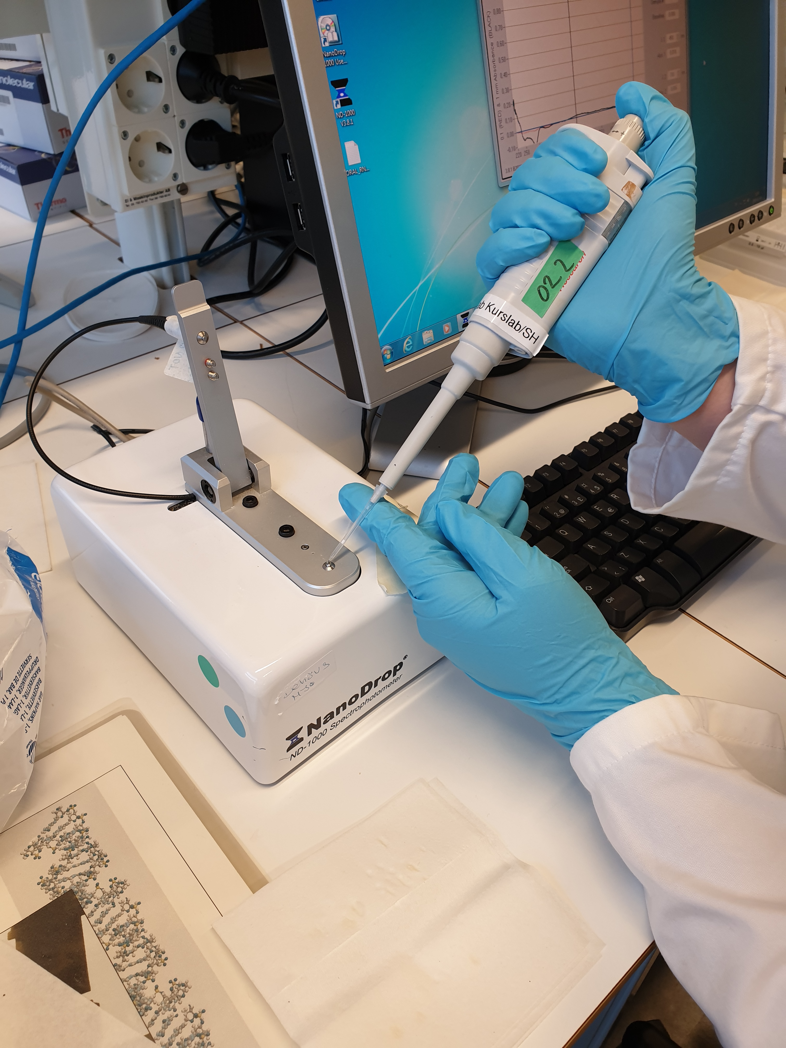behövde vi få ut en perfekt droppe för att Nanodrop skulle kunna mäta så exakt som möjligt.