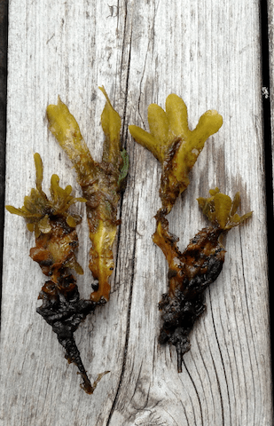 Spår i tångbältet efter en varm sommar och lågvatten » Unga tångplantor, med häxkvastar (kopia)