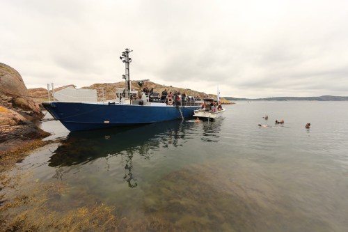 Efter en fantastisk lunch lagad av Oskar Nyberg, som gästbloggat här tidigare, tog vi på oss luftpaketen och hoppade i för ett dyk.