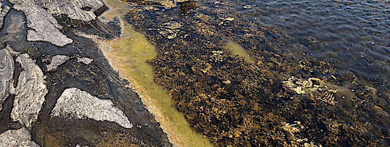 Den allra översta delen av bältet med grönslick kan vara helt dött, men lite djupare ner finns fin grönslick att samla in.