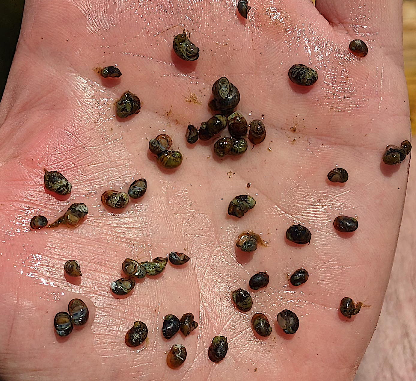 De vanligaste smådjuren är båtsnäckor, Theodoxus fluviatilis, som kan äta små groddplantor av blåstång, och vi finner även en del nattsländelarver som bygger sina hus av blåstångsbitar.