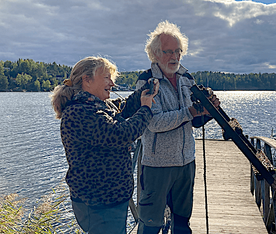 Här kollas badstegen efter vad som etablerat sig på stegen under sommaren. Vad är det för konstig mussla?