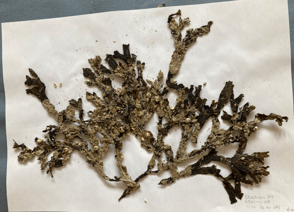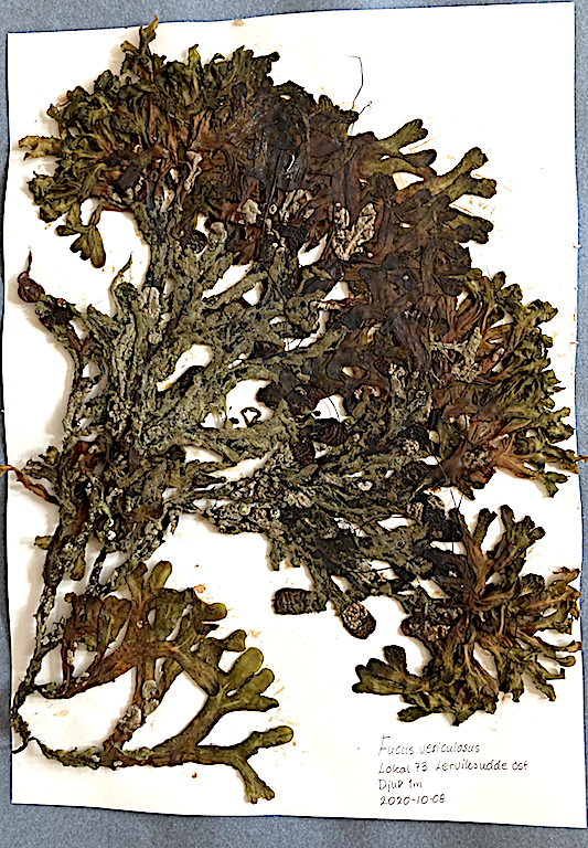 Tänk vad bara dessa få ark med pressad blåstång kan berätta om hur vattenkvalitén förändras över tid. Från en period när tången var skuggad och överväxt med grönalger på årsskotten, till idag när det finns stora blåstångsplantor som överlevt under flera år. Artsammansättningen av påväxten har också förändrats, där mängden havstulpaner och tångbark minskat. Nu kommer vi på Tångbloggen att jobba vidare med materialet och hoppas bli färdiga med en vetenskaplig artikel till våren 2022. Då kommer vi också så klart att berätta mer om resultaten för alla våra Tångbloggsläsare.