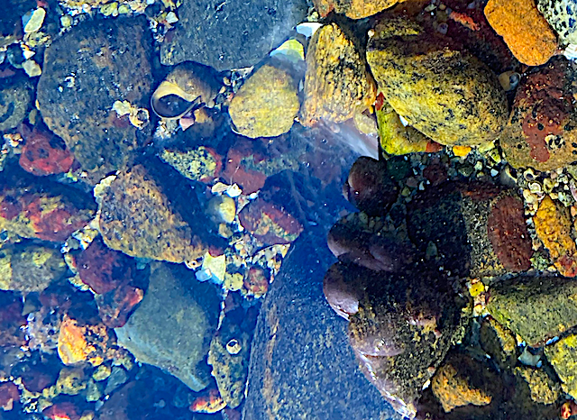 Många deltagare i projektet upptäckte också att grönslick är en viktig uppväxtmiljö för smådjur. Foto: A-C Nyberg, Aspö, juli 2021.
