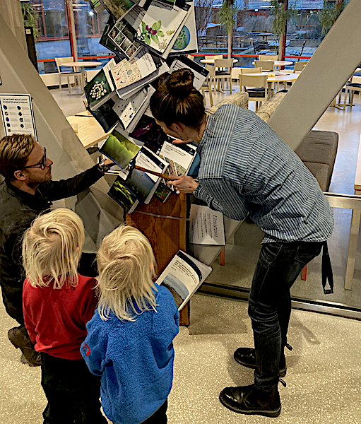 Detta är en akademisk ritual att spika upp avhandlingen och på Institutionen för ekologi, miljö och botanik görs det på en bred planka utanför lunchrummet. Det är många avhandlingar och lite trångt att hitta en plats. Med hjälp av sin handledare Johan Eklöf och sina två barn fixade Åsa spikningen med elegans.