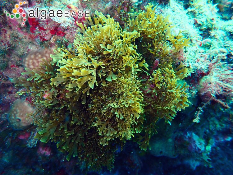 Den här arten ska du inte ta med dig hem från semestern annat än pressad i ditt herbarium. Bilden är lånad från http://www.algaebase.org.