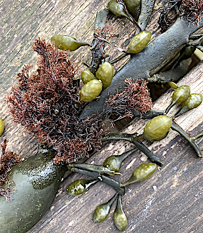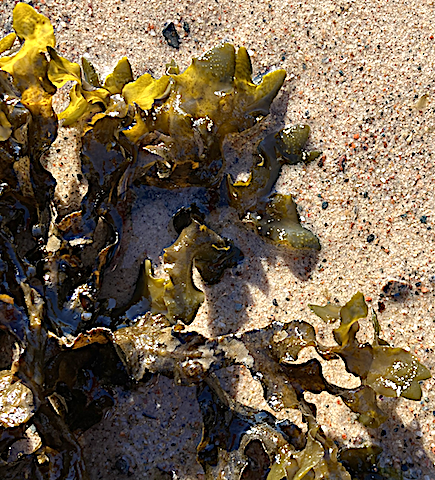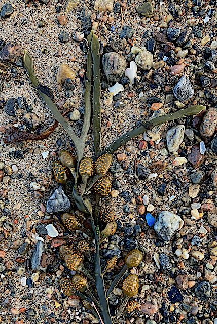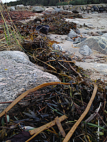 Blåstång med förökningstoppar ligger ilanddriven på stranden.