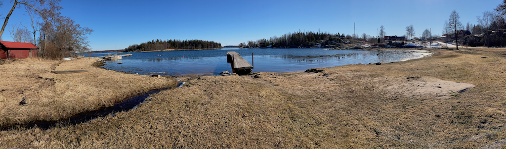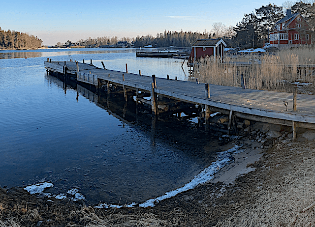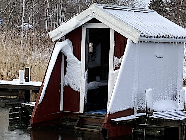 Idag, tre veckor senare, känns det som våren är på gång. Solen skiner och vi har fått ett högtryck som verkar bli kvar över Östersjön under en längre tid. Spåren efter att det blåste och var extremt högt vattenstånd i februari syns på flera ställen. När jag öppnade dörren till badhytten låg tofflorna vid dörren tillsammans med lite tång som spolats in när vattnet var som högst, ca 1 meter över medelvattenståndet.