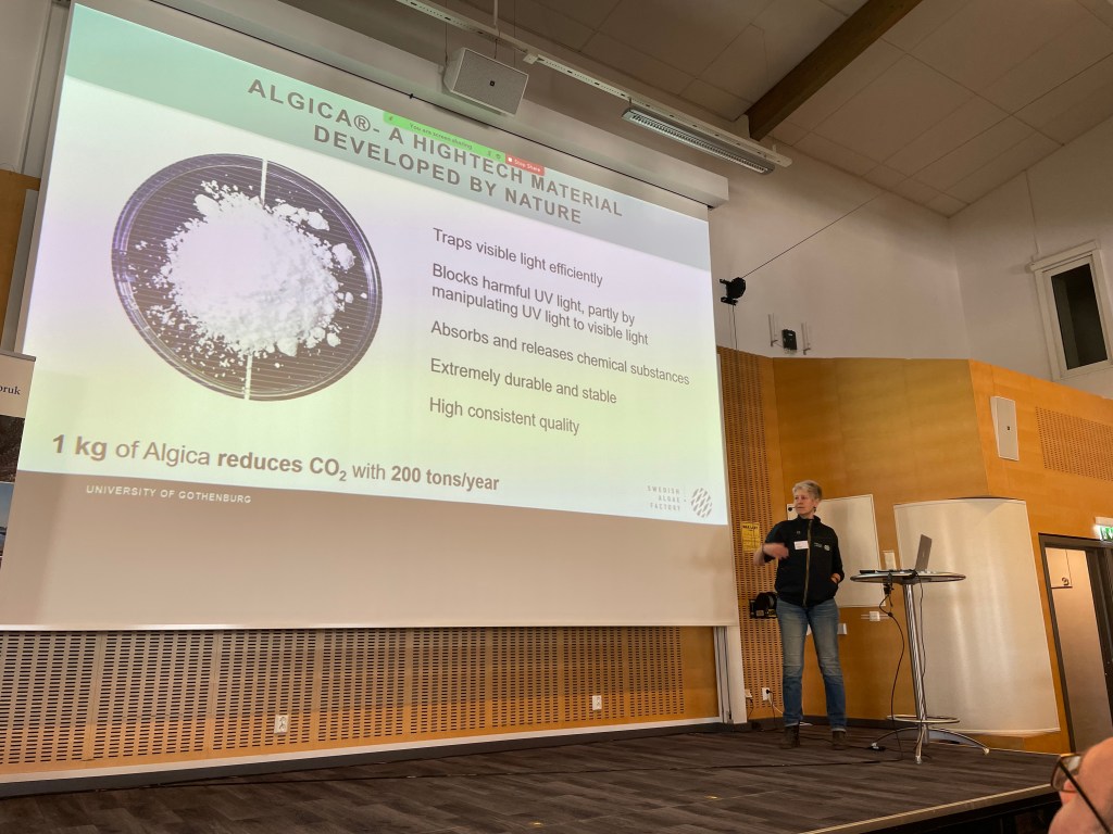 Algela Wulff, professor, företagare och folkbildare känd från Algpodden, berättar om Swedish Algae Factory, hur de startade för 10 år sedan och har växt. De får ut tre olika produkter från sina mikroalger. Oljan kan gå direkt till biodiesel och det var tanken från början med företaget. Biomassan kan användas till många saker, men där är det allt pappersarbete som gör att de istället väljer att arbeta med skalen, frustulerna, av kiselalgerna. Dessa skal används för att öka effektiviteten i solceller, men även som solskydd i hudvårdsprodukter som finns på marknaden. Så bra om vi kan byta ut de farliga ämnena samt nano- och mikroplaster i solkräm mot alg-skal! Forskning pågår även kring att öka kapaciteten på batterier med dessa och ännu fler användningsområden undersöks. Fantastiskt vad små kiselalger är bra till mycket!