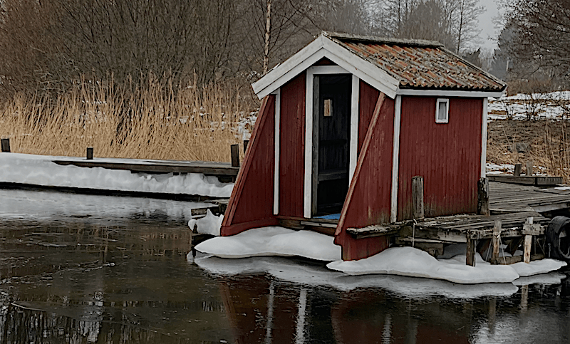 Det går fortfarande inte att gå ner för trappan till badhytten och det går inte heller att få loss havstulpansplattan som hänger i ett rep till höger om dörren. Det syns på bilden om du kollar noga. Det lär nog dröja ett tag till innan det går att kolla om något har överlevt på plattan.