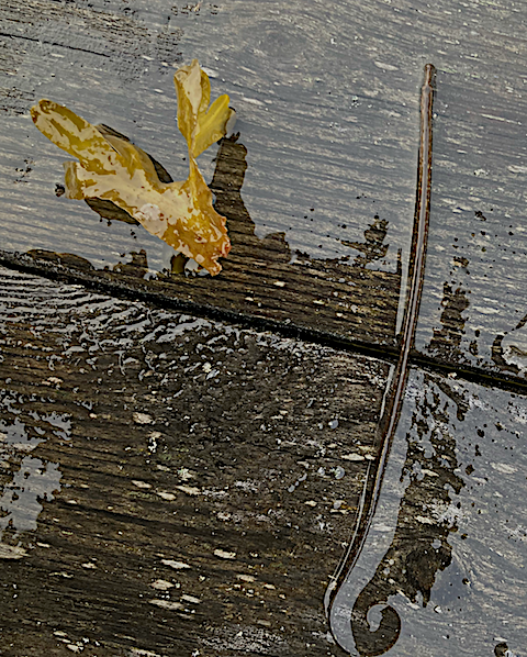 Den andra händelsen som jag hört talas om var att yrkesfiskaren Peter Hagberg fick näten fyllda av plastblommor. Och det måste varit stora mängder med olika plastblommor som hamnat i sjön och spritts runt om i havet. De började dyka upp strax efter jul. De lär vara tillverkade i Kina. Så hur hamnade de i sjö? Troligen låg de i en av de 46 containrar som ett fartyg från det danska rederiet Maersk tappade i havet utanför Nordjylland natten mellan 21 och 22 december 2023 när stormen Pia drog över Danmark. Plastblommor kan flyta långt med strömmar och vågor. Dags att kolla i den översta tångvallen, där de borde hamnat. Det första jag fick syn på var ett grönt blad av baldersbrå inne ibland tång och is. Men sen hittade jag både några gröna plastskott och en plastblomma inne ibland tång och snäckskal.