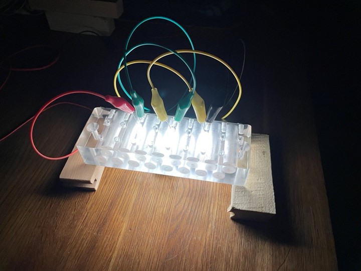 Blåstång får sin näring genom fotosyntes. Då bildar den även syre. Finns det inget ljus respirerar den endast, vilket innebär att den förbrukar syre, och om det är mörkt för länge tar syret slut och tången dör. Eftersom lådan med tångproverna monteras på plats i raketen en hel vecka innan uppskjutningen, behövde vi se till att tången får tillräckligt med ljus för att må bra. Köksbordet hemma förvandlades till raketlaboratorium när jag fick hjälp av sambon med att mäta hur många dioder som behövdes för att ge lagom mängd ljus, samt att fräsa ur spår och löda ihop dem så att de kan tändas och släckas med en timer utanför raketen.