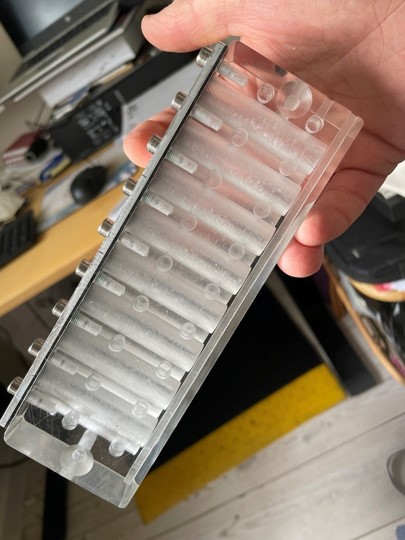 Eftersom vi inte hade en enda krona i finansiering till detta, fick vi trolla med knäna för att få ihop en låda som kunde hålla våra prover. Det var mycket som skulle stämma både för att tången ska klara resan och för att inget ska kunna gå sönder eller skaka loss och påverka raketen eller dess innehåll under färd. Vi fick många nya kunskaper och är mycket tacksamma för att det duktiga teamet på SSC kunnat hjälpa oss såpass mycket. Tillslut fick vi till en låda i plexiglas där vi kan stoppa in provrör med ett litet tångfragment i varje.