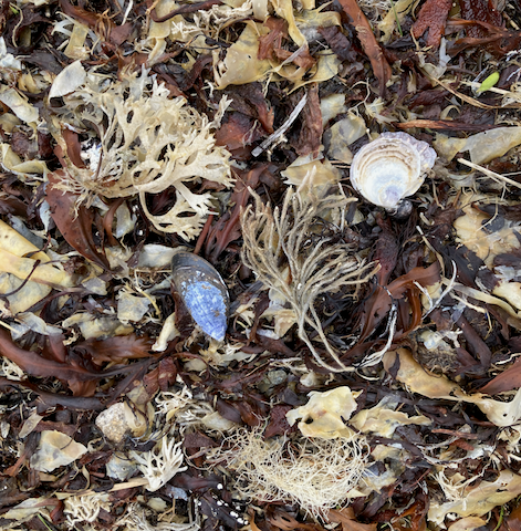 Det finns också många blåstångsplantor som är helt ludna så här års. Det är brunalgen trådslick, Pylaiella littoralis som övervintrat på de äldre delarna av blåstången. nNu när ljuset kommer tillbaka växer den snabbt till. På hemresan när jag tittade ner i vattnet vid kajen i Uttervik satt just en massa luddiga plantor nära ytan.