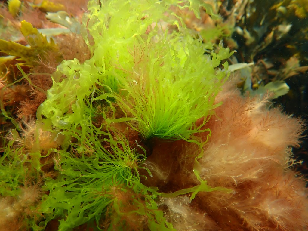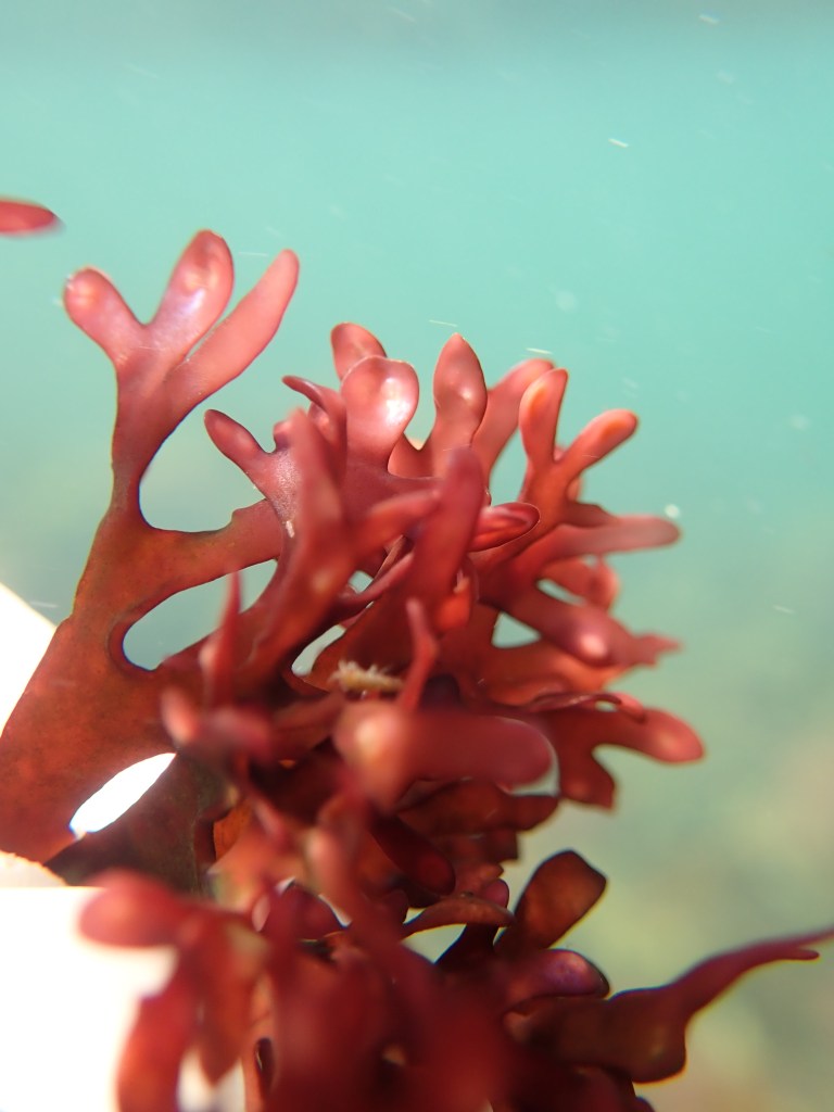 I går gjorde jag ett lite ovanligt fynd i baljan där jag skakade ur småkrypen. Hittade en lite mörkare brunalg, som inte riktigt liknade smalskägg, Dictyosiphon foeniculaceus som ramlat loss från tången. Tror att det är krulltrassel, Stictyosiphon tortilis, men vad var det för grov tråd som låg inne i algtofsen? Oj, den rör ju på sig!