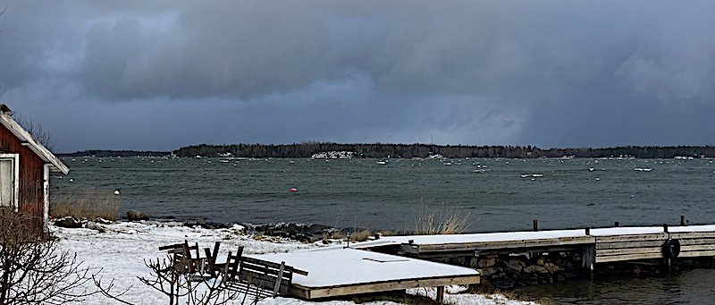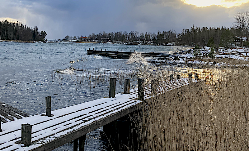 Men vad betyder kraftiga stormvindar över Östersjön? När blåsten startade för tre dagar sedan var det fortfarande ganska lugnt väder i viken. Vattentemperaturen var hög för året, ca + 5,6 0C. Vi blev strömlösa nästan i två dygn. Men det var inget mot den kraftiga stormen Alfrida 2019 som drog in norrifrån och gjorde oss strömlösa i över en vecka.