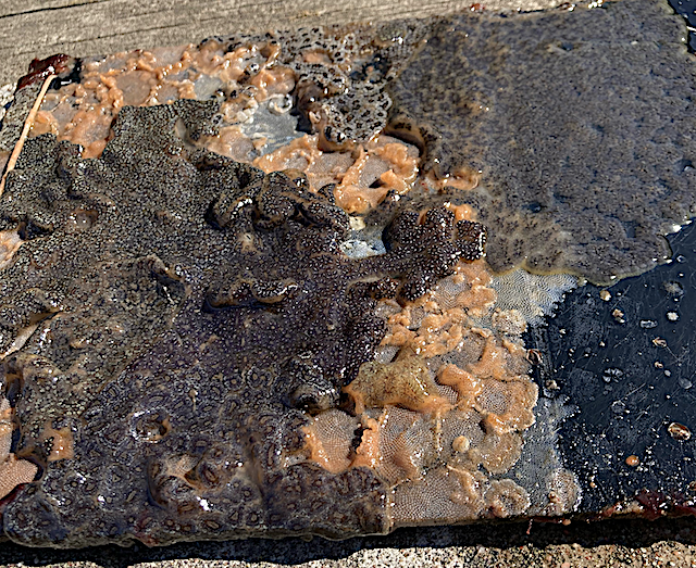 Plattan åkte ner i vattnet igen. Och nu finns det nya delar som är tomma och lediga för arter att etablera sig på både på ovansidan och undersidan. Nästa koll blir antagligen efter nyår om inte det ligger tjock is i hamnen.