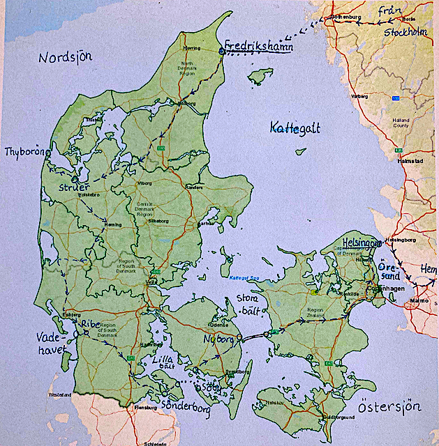 I början av oktober fick jag möjligheten att resa runt i Danmark under en vecka tillsammans med min dotter. Färdmedlen var färja, tåg, lokala bussar och apostlahästarna. Vi hade planerat resan men när stormen Amy drog in över Danmark natten mellan den 5 och 6 oktober fick planen ändras lite. Mer om detta senare.