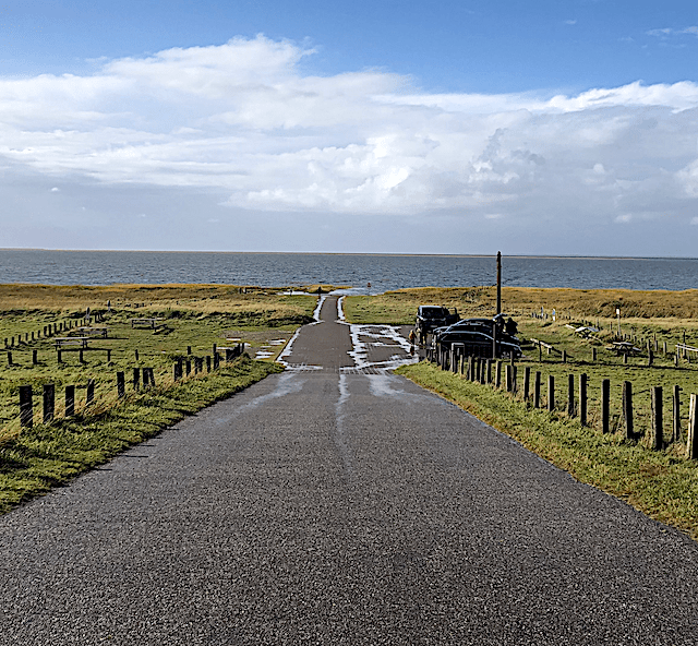 Tyvärr kunde vi inte göra någon längre tur ut på Vadehavet eller stanna och följa hur högt vattnet steg. På Vadehavscentret fanns information om de största stormfloderna, bland annat Julstormfloden 1717 och Backafloden 1872 som mätte 3.5 meter över normalt vattenstånd. Under stormen Babet i november 2023 steg vattenståndet över 2 meter och orsakade stor förödelse på många platser. För oss blev det att ta bussen tillbaka till Ribe, fortfarande som de enda passagerarna. Där vi åt en god middag på kvällen och sov gott, även om vi kunde höra regnet piska mot taket och fönstren när stormen Amy passerade under natten.