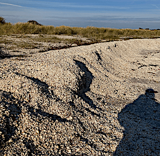 En stilig skalbank utmed stranden i Fredrikshamn.Ett stort antal musslor och snäckor hittades på stranden.