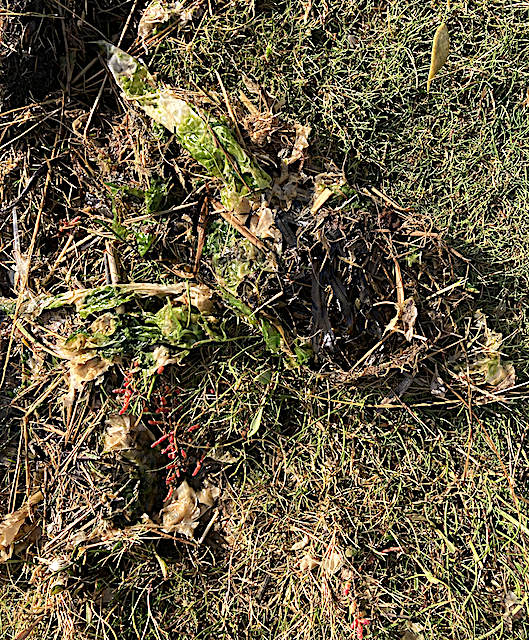 Den enda möjliga förklaringen skulle kunna vara att med de kraftiga regnen att den lilla sjön i närheten eller något annat näringsrikt vattendrag svämmat över, växterna spolats ut i havet och drivit iland vid högvattnet. När vattnet drog sig tillbaka blev de liggande kvar. Igen, spår av ovädret som följt oss under resan. Tackolov utan att påverka oss speciellt mycket.