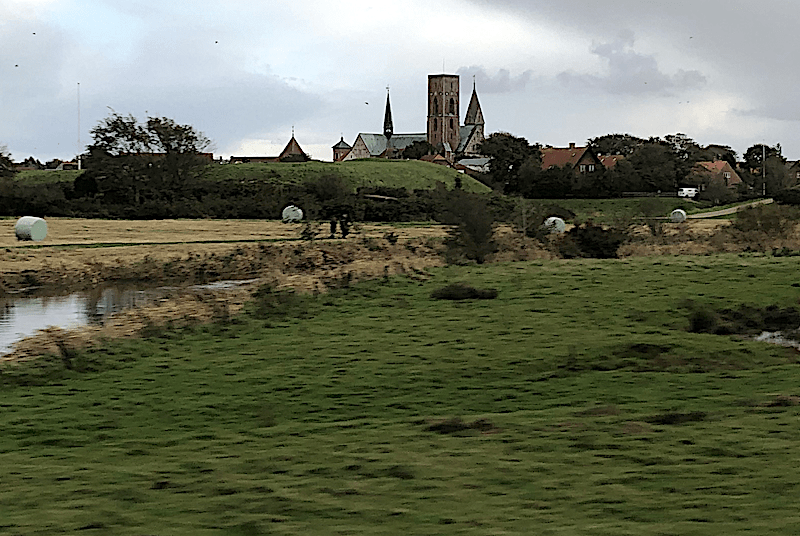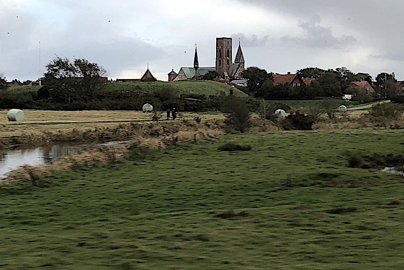 Vårt tredje stopp var Ribe, Danmarks äldsta stad som ligger vid en liten å som rinner ut i Vadehavet. Efter en fika i det gamla packhuset som nu är omgjort till ett populärt café tog vi bussen ut till Vadehavscentret och stranden. Vi var de enda två passagerarna. Turistsäsongen är helt klart över och att väderprognosen utlovade en storm till kvällen och högt vattenstånd, kanske upp till 2,5 -3 meter över medelvattenstånd, kan ju ha spelat in.