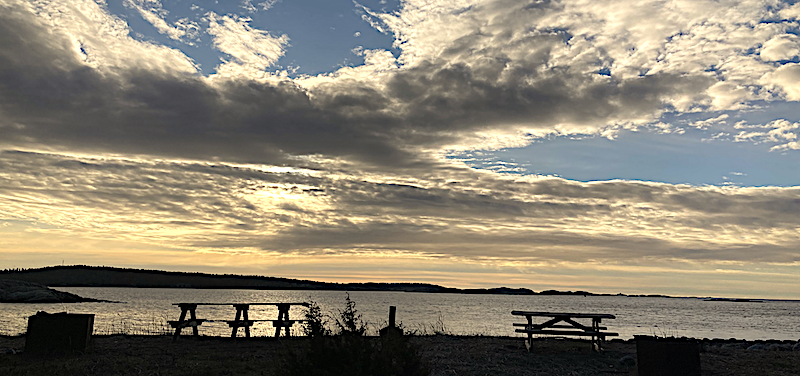 Bänkar och grillplats vid Danmarksbukten, på Saltö. Väl värd ett besök.