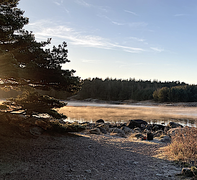 Vi lämnade Tjärnö när sjöröken smög upp över Svallhagen och kom hem till ett vintrigt landskap på Räfsnäs, norr om Stockholm. Även här steg sjöröken över havet nere vid badhytten under soluppgången. Så vackert. Roligt att få dela med oss av de första vintriga tecknen. Hur ser dina stränder ut nu i slutet av året? Hälsningar från oss på Tångbloggen.