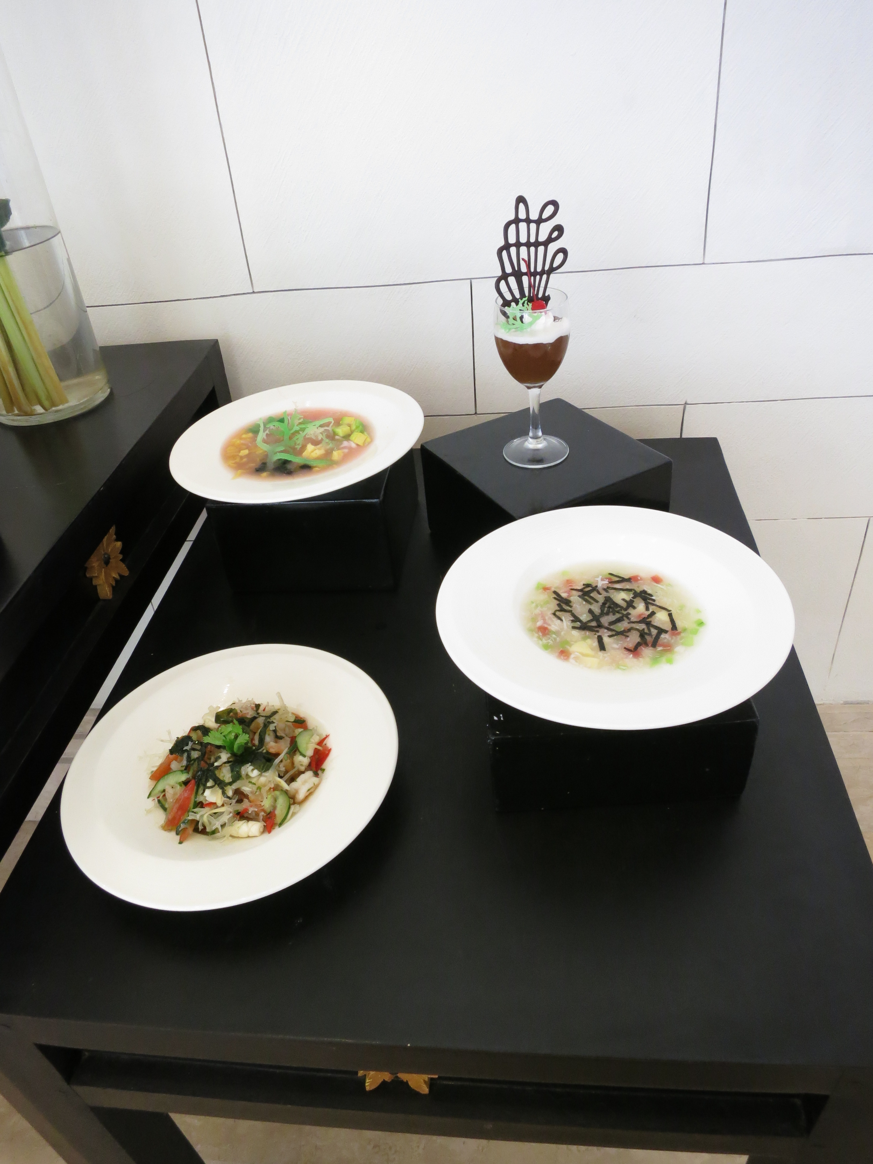 Blandade havsinspirerade fat, grytor och kakelplattor. Jag gillar krabbgrytan.