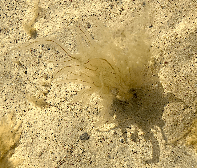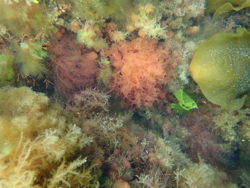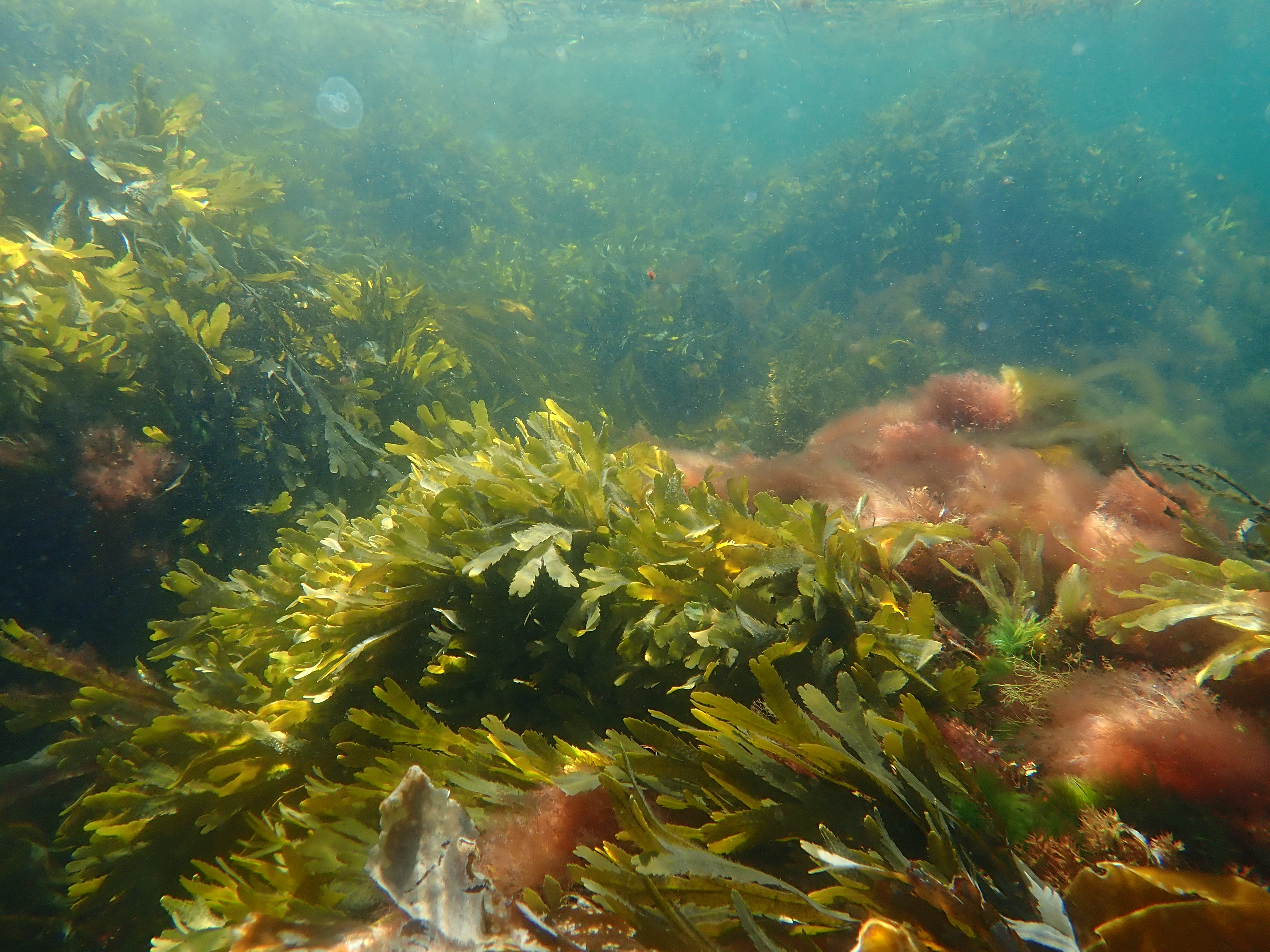 Rödalgen gaffelkrasing (Jania rubens) finns på grus- och skalbottnar på ett fåtal lokaler och är idag klassad som VU sårbar. För att slå fast om den skulle kunna flyttas till LC livskraftig krävs dykstudier på flera lokaler med liknande bottnar.