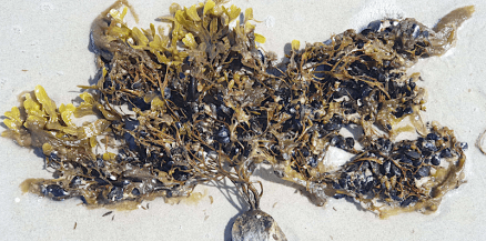 Har aldrig sett en tångplanta med så mycket blåmusslor. Foto: Louise AlbertsonFotot skickades in av Louise Albertson och plantan hade drivit i land efter blåsten på en strand vid Barsebäck i Skåne.
