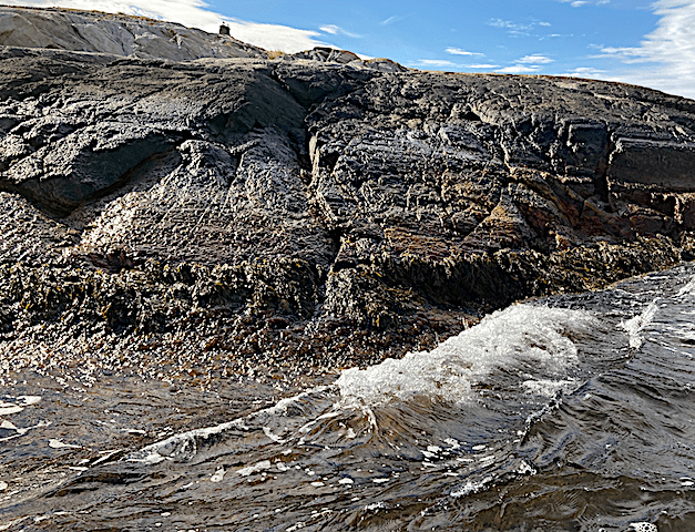Under en promenad på Saltö undrade jag vad det var i vattnet som gav ett märkligt mönster. Kunde det vara ett bälte av stora plantor av sargassotång som bromsade upp vågorna? Ja, det visade sig stämma. När en planta ligger och flyter vid ytan blir det helt lugnt i vattnet runt den. Vilka fler effekter kan de stora buskarna av sargassotång medföra? Dags att hoppa i och ta ett lite annorlunda tångbad.