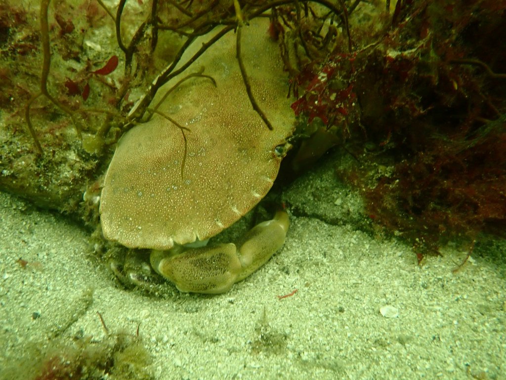 En het sommardag var det riktigt uppfiskande att simma runt mellan sargassotången. I skuggan under plantorna var vattnet svalt och skönt. När jag försökte kolla lite inne ibland buskarna blev en strandkrabba ilsken och knep till med sina klor. Den verkade också tycka att det var fint att gömma sig inne i sargassotången.