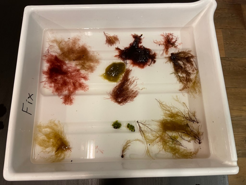 En vit fotobalja är toppen för att flyta ut alger så man kan se hur de ser ut. Den är även oumbärlig vid pressning till herbariet.