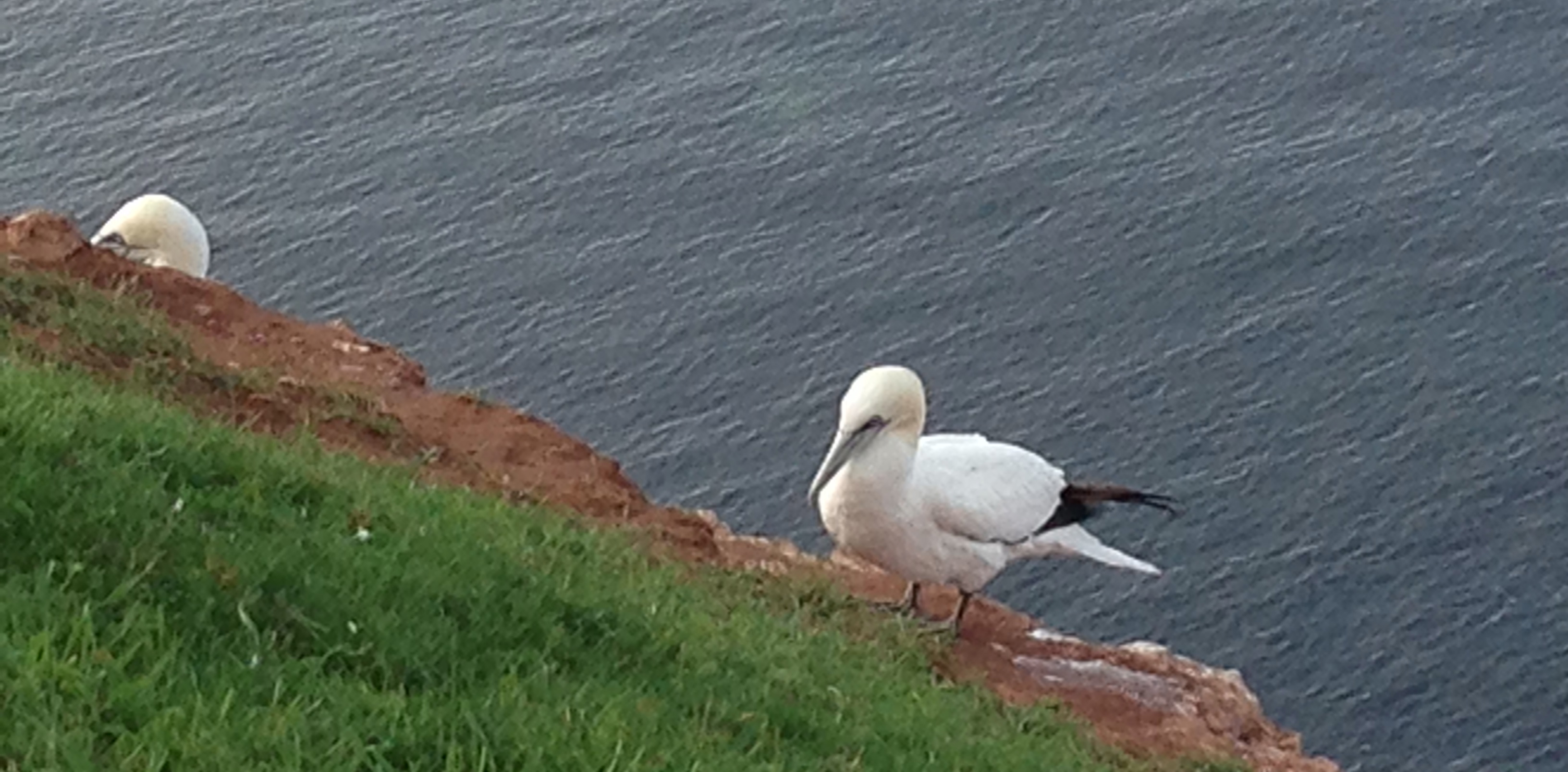 Nere vid vattnet fanns en koloni med sälar. Det är en ganska ny etablering av en sälkoloni och har bara funnits i ca 20 år. För den som har skarpa ögon syns en stor vindkraftspark.