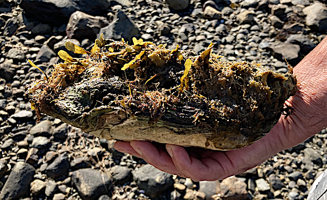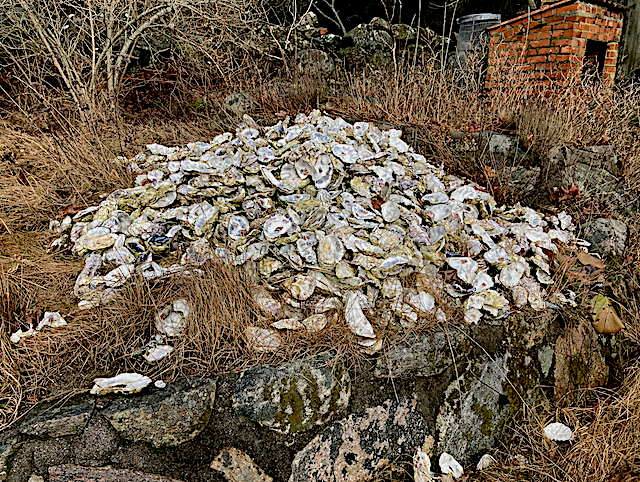 Vi har en stor hög med skal, där de äldsta är från starten när det kupade ostronet dök upp vid Svallhagen och överst ligger några från gårdagens middag. Högen är stor som en studsmatta och syns på Google maps. Vill du veta mer om det kupade ostronet eller svartmunnad smörbult finns en sammanställning från Baltic Breakfast och en inspelning av frukostmötet.