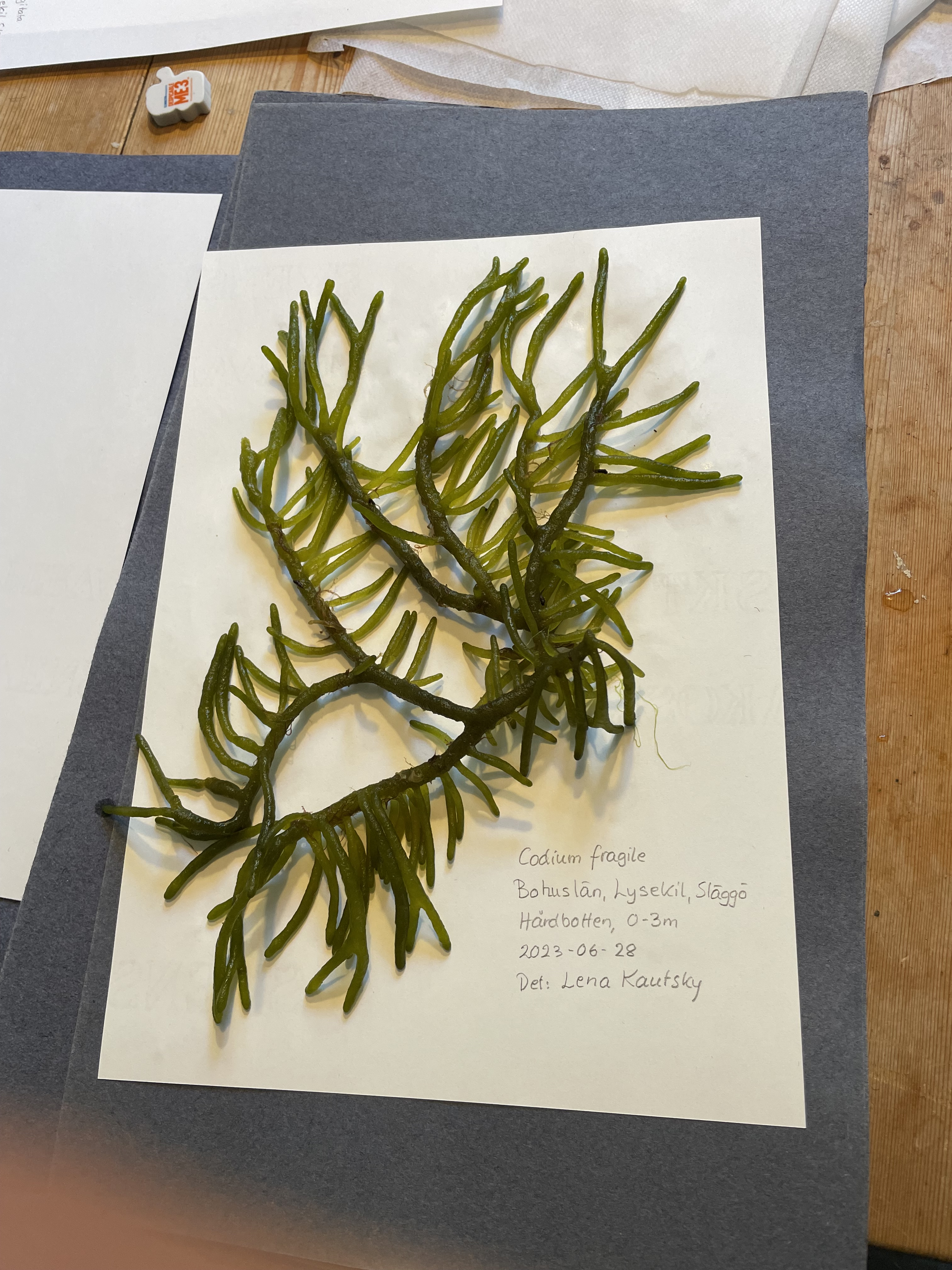 Grönalgen Codium fragile har kommit in till svenska vatten på senare år och är en av de arter som museet saknar i sina samlingar.
