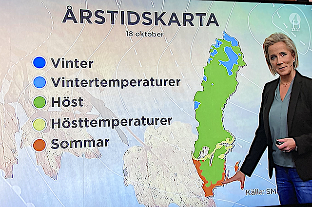 Utmed kusten har vi fortfarande hösttemperaturer enligt vädersammanställningen på nyheterna men det dröjer nog inte länge innan det blir höst här också. Just nu är tiden när vi har tre årstider samtidigt i vårt avlånga land. Nära kusten håller vattnet kvar temperaturen längre och vi får en fin lång höst.