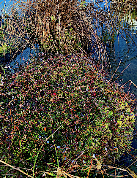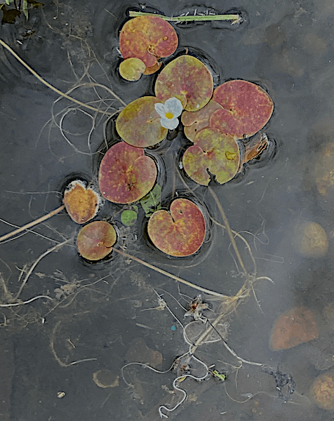 Andra är såklart våra näckrosor, både gul, vit och röd. Och så har vi en liten miniatyrmosse, med sileshår, tranbär och vattenklöver. Där finns det nu flera stora tranbär som syns mellan transbärsbladen och vitmossa.