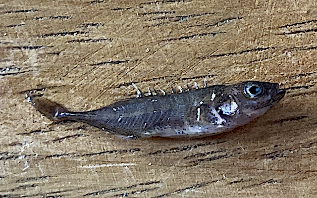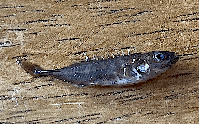 Nu börjar tånggråsuggorna bli både stora och mångaSmåspigg med sina nio tydliga taggar på ryggen